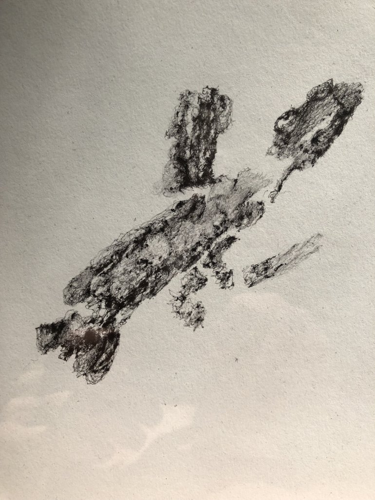 Crédits de l’image : Dessin de Pascal Battus lors d’un voyage en train. “Les mouvements du train déterminent le trait du crayon tenu à main levée.”