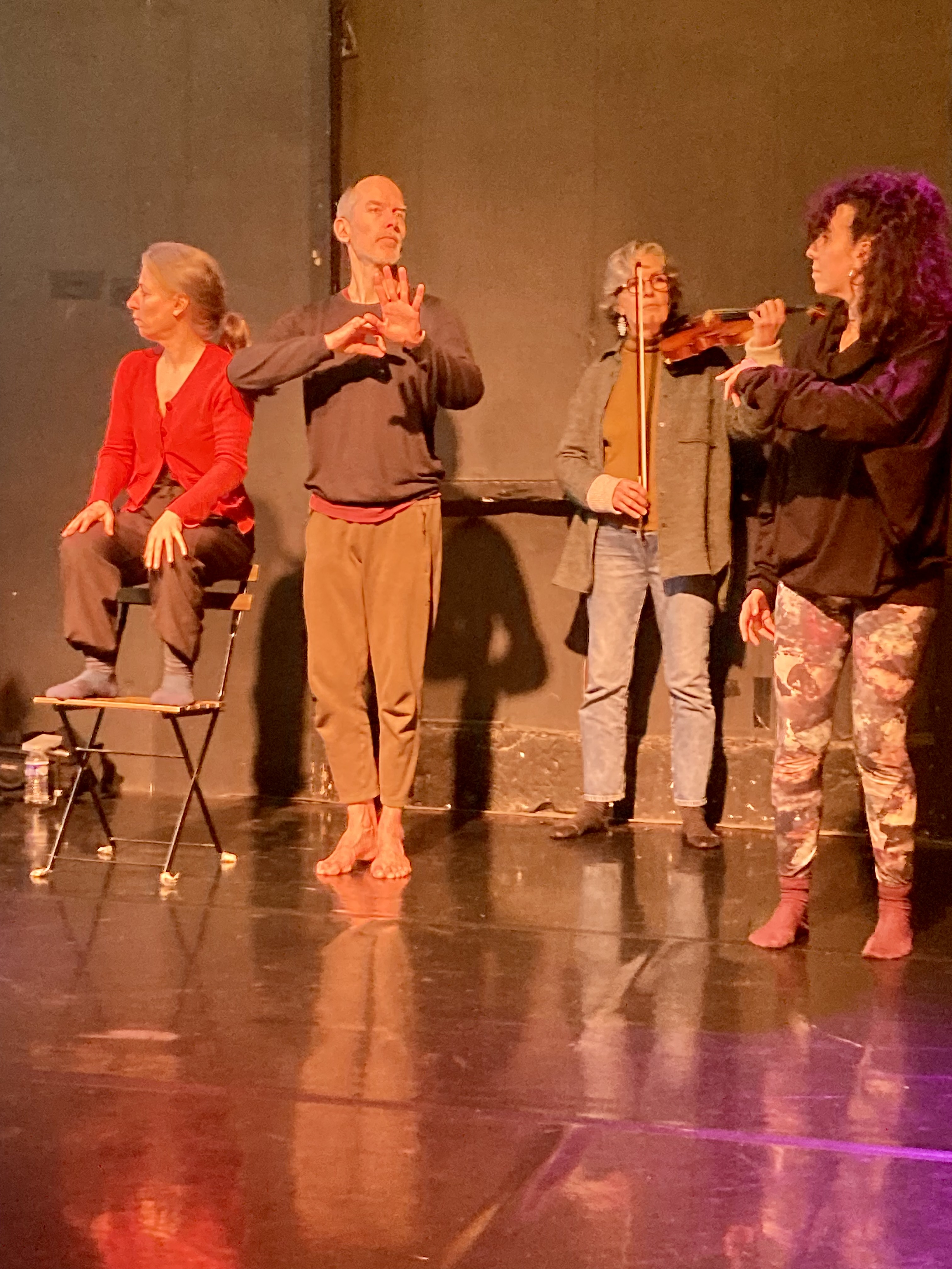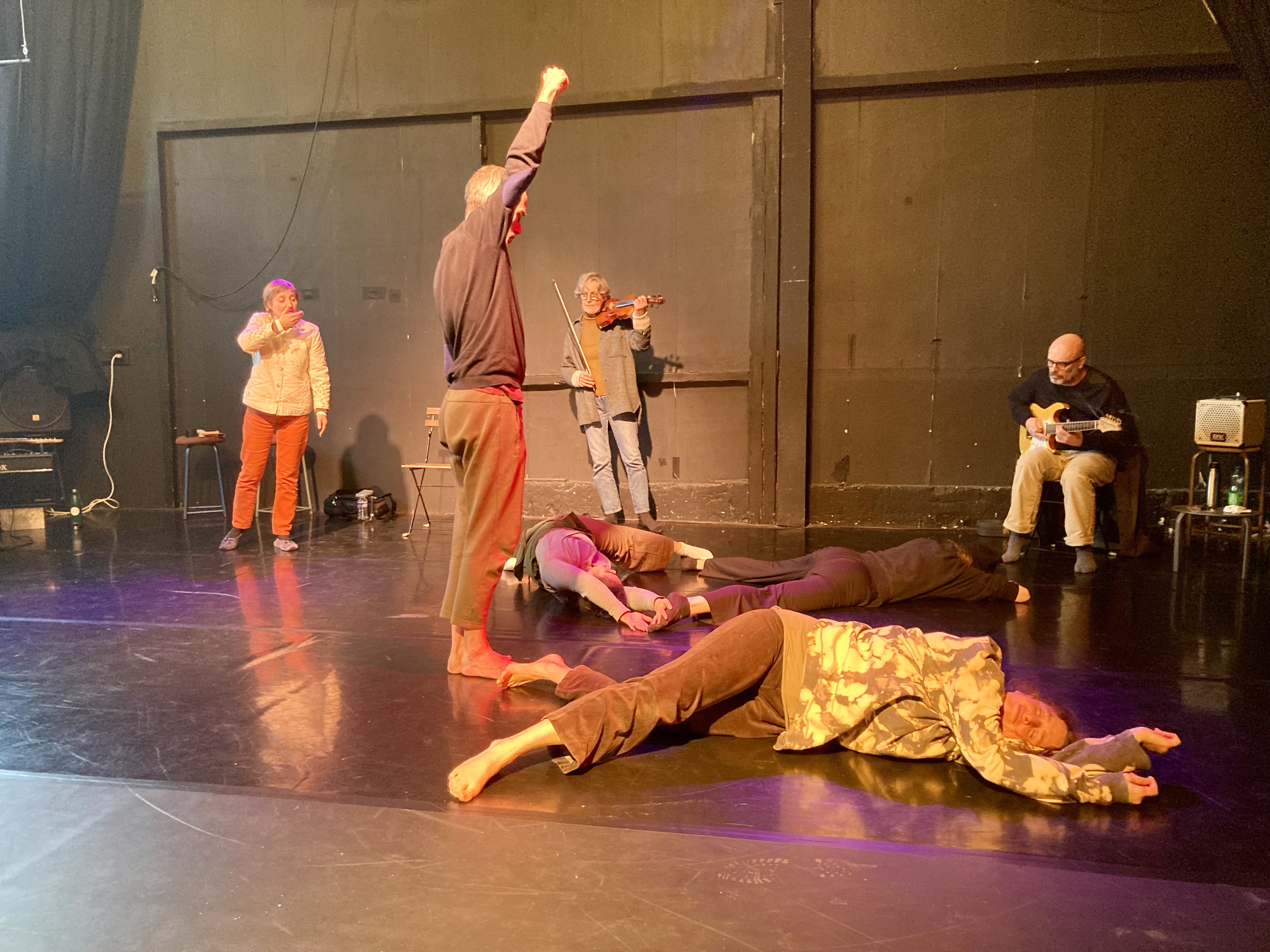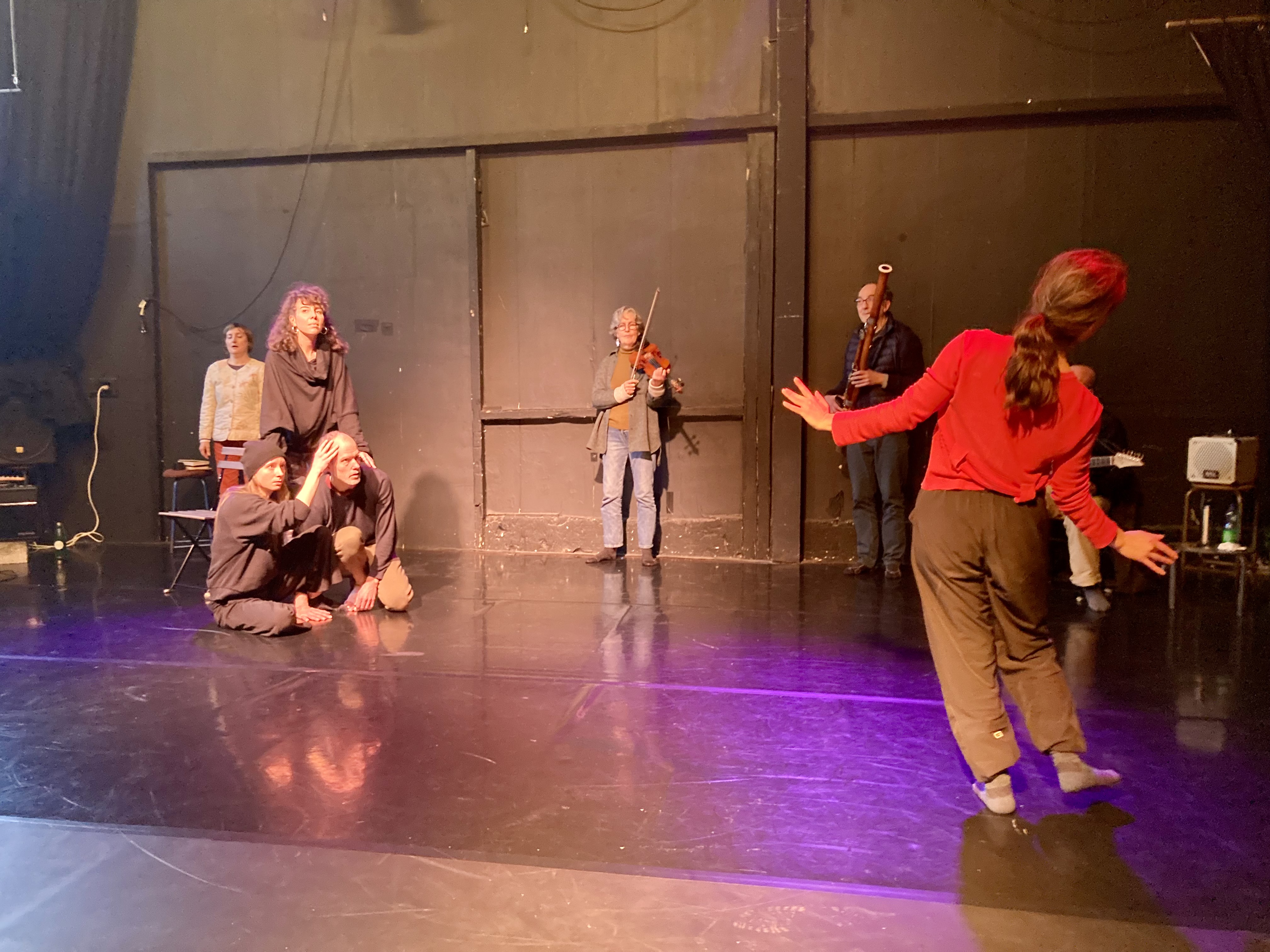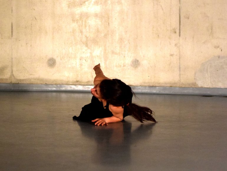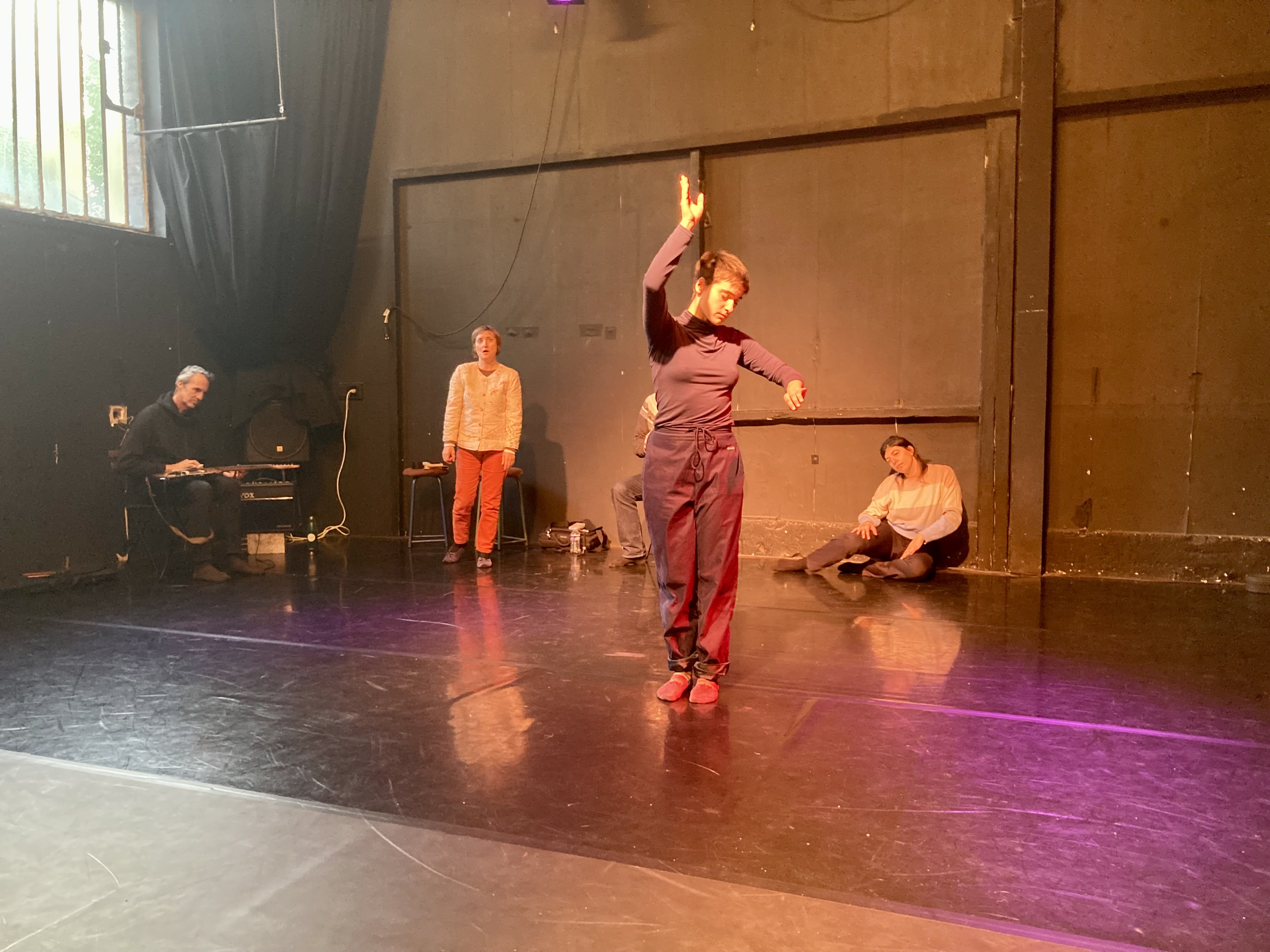 Restitution publique de la journée de travail danse/musique improvisées proposée par Marguerite Papazoglou (danse) et Jean-Sébastien Mariage (musique).