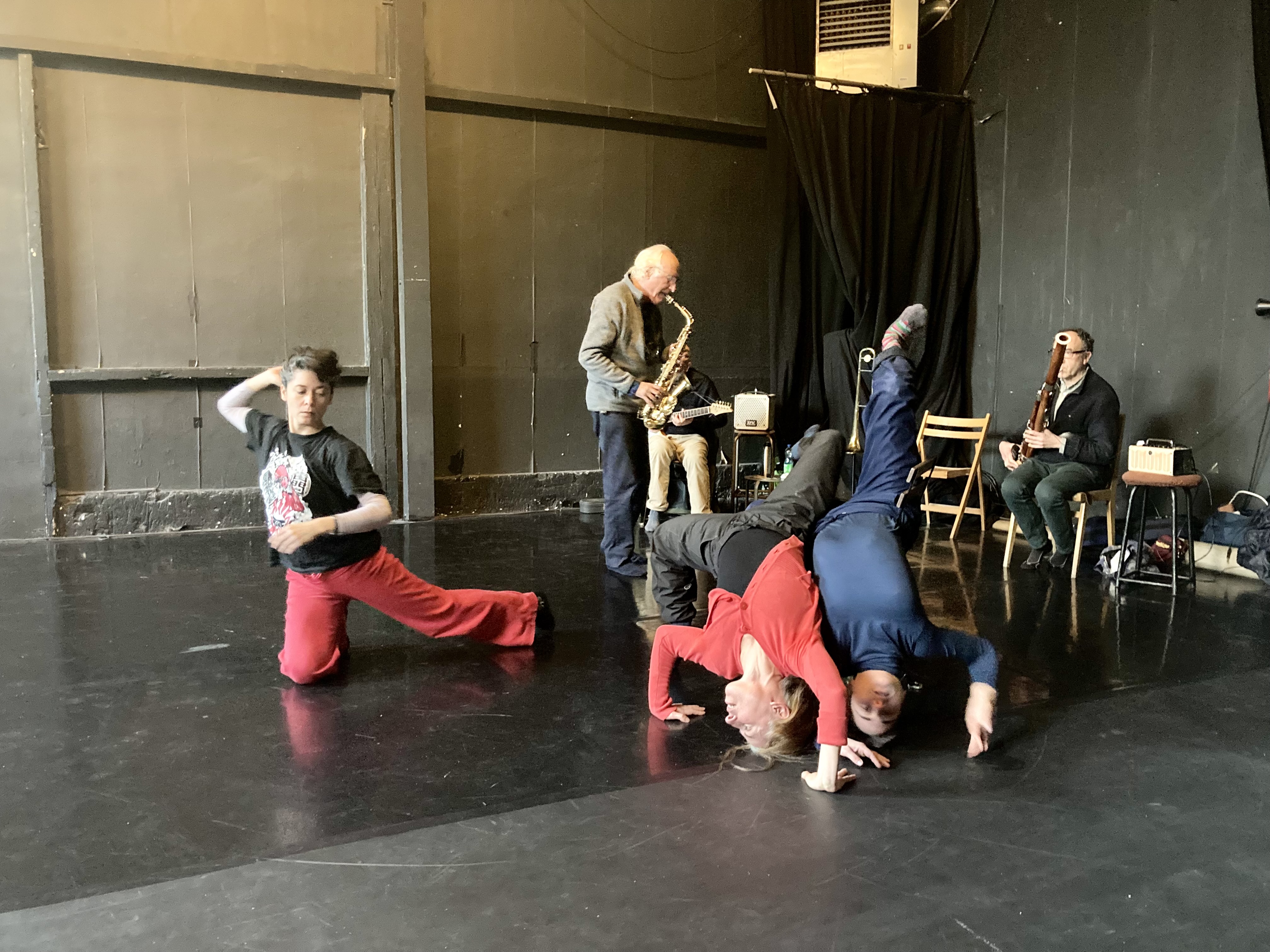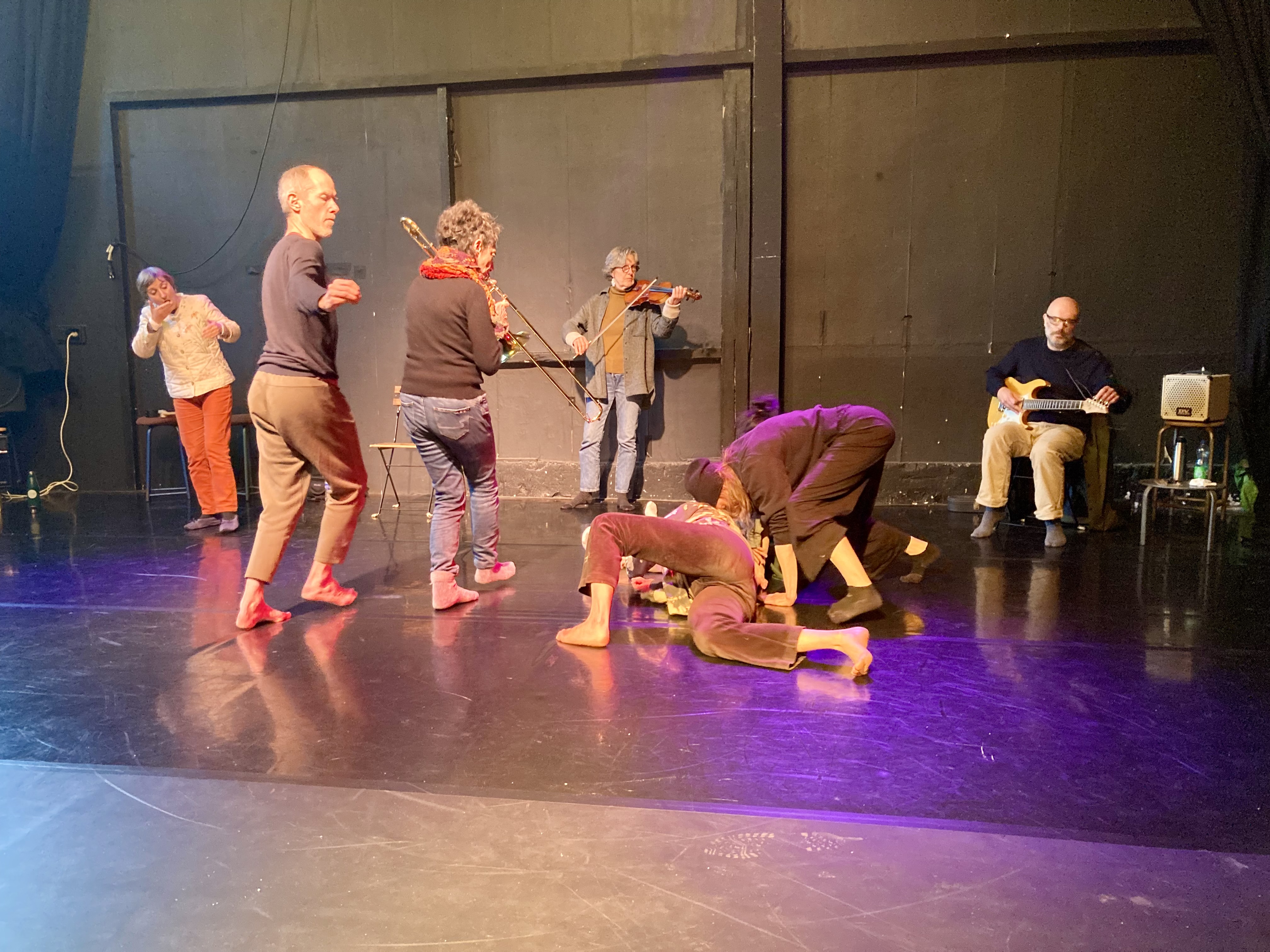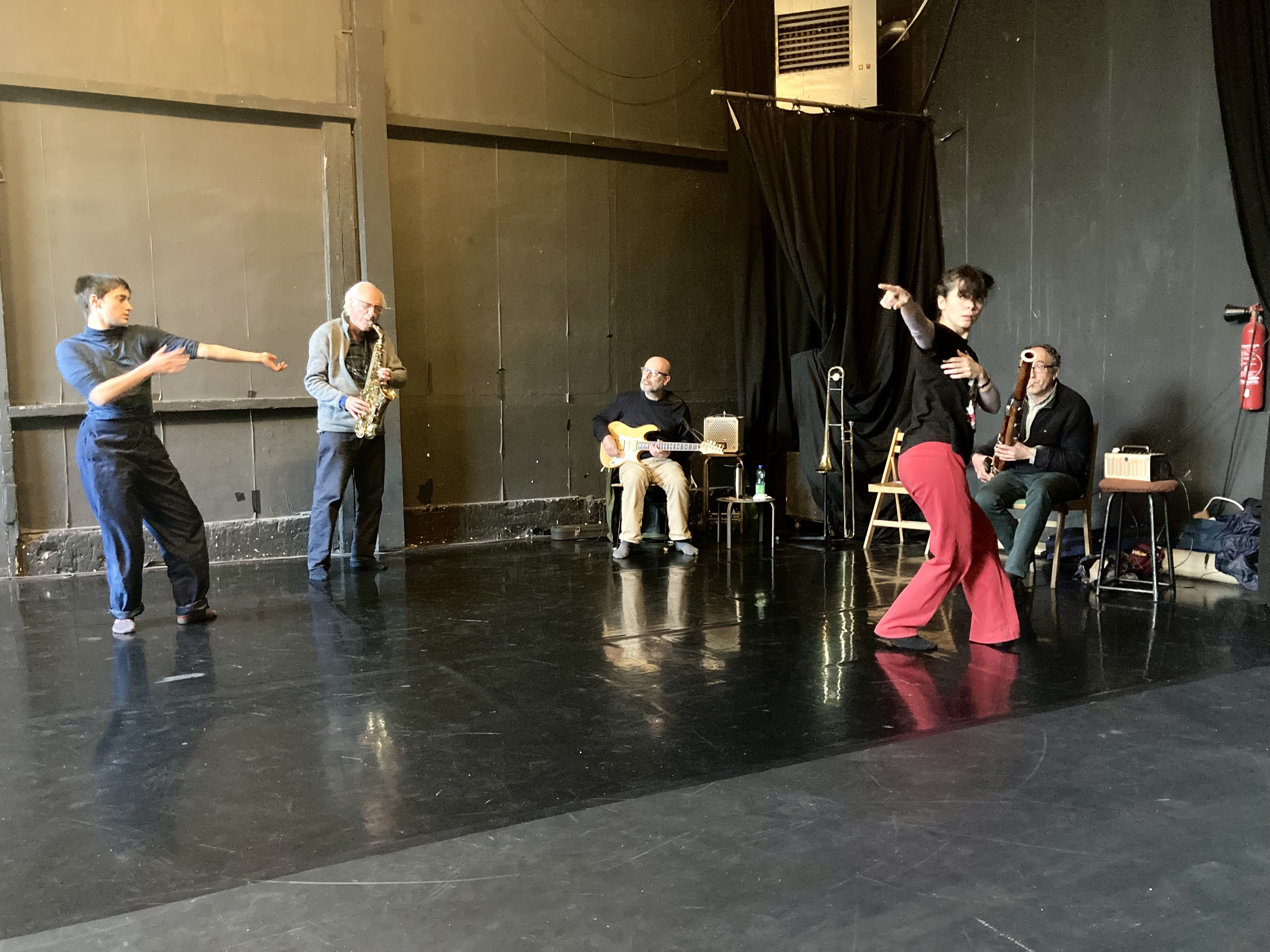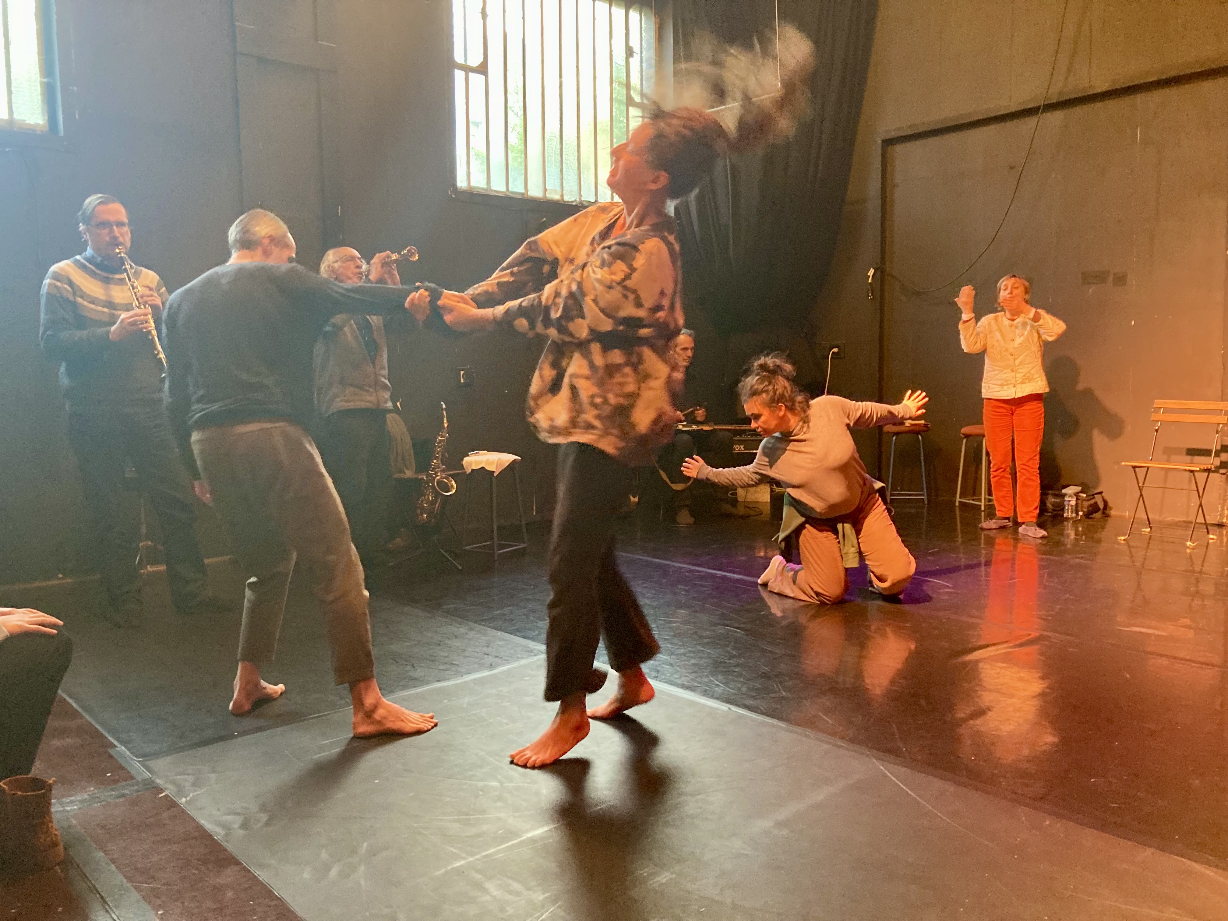 Danse et musique se transforment l’une l’autre. La musique invite la danse à écouter plus loin. La danse invite l’ailleurs dans la musique. Musique et danse créent l’ici, forme à la fois tangible et suspendue, unique et éphémère. Les musiciens et les danseurs improvisateurs partagent la fabrique du temps bien sûr, mais aussi celle de l’espace. Ils ont aussi en commun une démarche, celle d’ouvrir le champ des possibles, de reconnaître et intégrer des matières inconnues. Surgies du hasard, et aussitôt accueillies dans la composition.