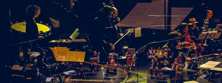 Benjamin Duboc (composition et orchestration), Émilie Aridon-Kociołek (piano), Sébastien Beliah (contrebasse), Patricia Bosshard (violon), Cyprien Busolini (alto), Jean-Luc Cappozzo (trompette), Guylaine Cosseron (voix), Jean Daufresne (euphonium), Isabelle Duthoit (voix et clarinette), Amélie Grould (percussions), Franz Hautzinger (trompette), Sylvain Kassap (clarinette basse), Claire Luquiens (flûte), Dorian Marcel (contrebasse), Jean-Sébastien Mariage (guitare électrique), Fanny Meteier (tuba), Gaël Mevel (violoncelle), Mathias Naon (violon), Alexis Persigan (trombone), Jean-Luc Petit (clarinette contrebasse et saxophone sopranino), Diemo Schwarz (électronique), Thierry Waziniak (percussions) | Françoise Michel mise en lumière | Céline Grangey mise en son | Jeanne Benameur (écriture et voix).