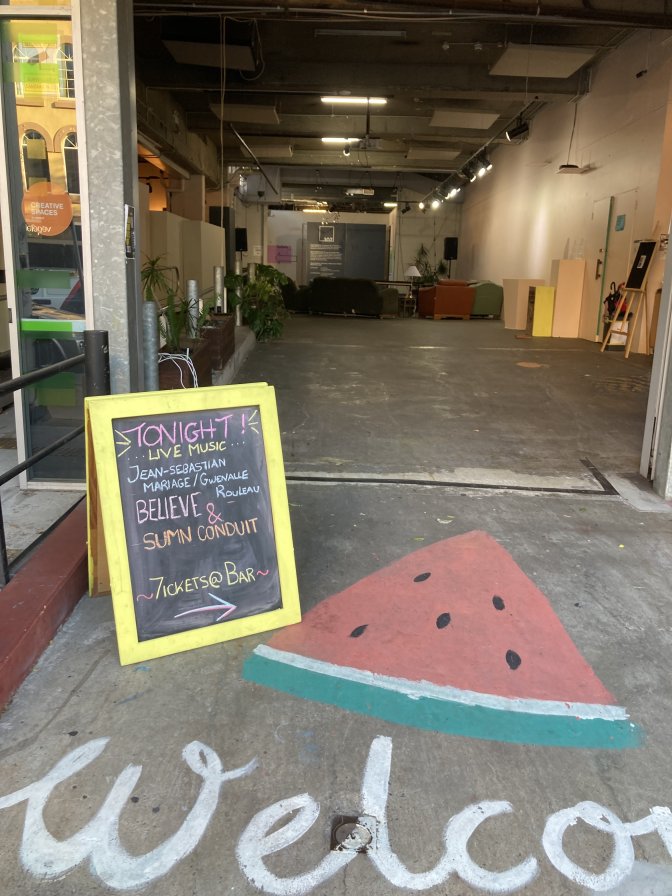Pour ce deuxième lieu et durant les trois jours du festival, le duo est invité, en plus de son concert, à faire des rencontres avec certains des improvisateurs les plus pointus d’Australie : Rhys Butler (saxophonist, Canberra), Richard Johnson (wind multi-instrumentalist , Canberra), Yichen Wang (OP-1 electronics, Canberra/China), Elizabeth Jigalin (piano, Sydney), Helen Svoboda (double bass / vocals, Narrm), Jim Denley (wind instr. , Sydney), Laurence Pike (drums and percussion, Sydney) Jodie Rottle (flautist, Brisbane), Maria Moles (drummer, Narrm), Melanie-Louise Eden (vocals / accordion, Sydney), Clayton Thomas (double bass/percussion, Sydney).
