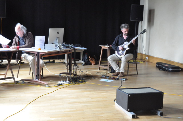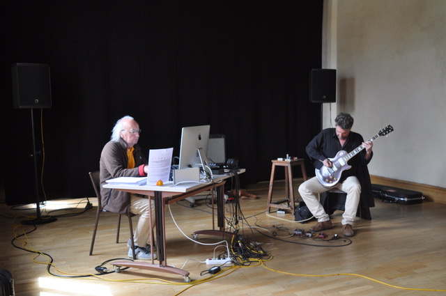Des blocs textuels déclarés ainsi que des blocs sonores-musicaux travaillés en improvisation viennent à des temps déterminés choquer, en live, cette élaboration physique et sonore, et ainsi bouleverser la suite du possible.