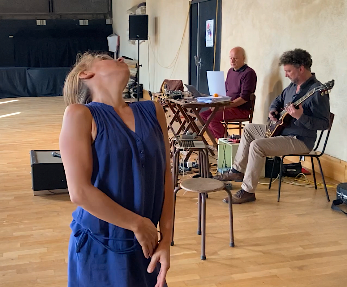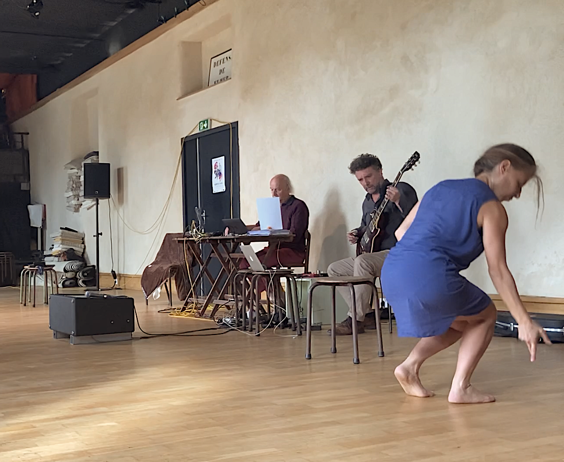Agencer dans ce temps et cet espace les inter-relations créées entre la voix, la musique, la danse, par une recherche liée au conflit permanent entre cohérence et incohérence. Cette triangulation installée, provoquée, crée, par les compositions en temps réel, de multiples métonymies et métaphores perçues par les spectateur.trices/auditeur.trices. Elle provoque la naissance, la mort, l’enfouissement, le jaillissement poétiques. Cette intention se balise sur des mises en accord relatives des artistes qui peuvent être épuisées ou naître au cours de l’expérience.