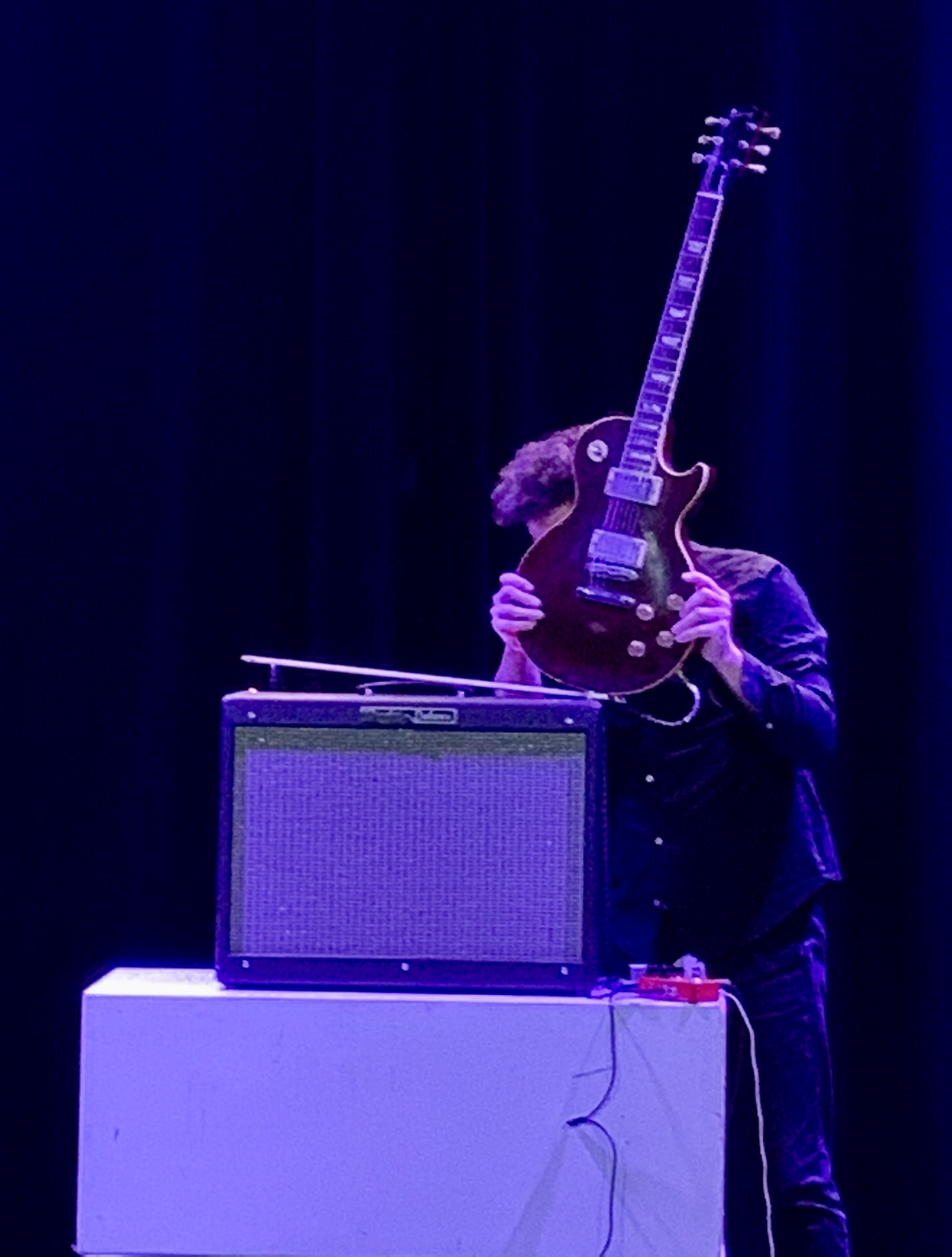 C’est un solo de guitare, ce n’est pas une danse, mais pour faire entendre le son que je désire je me déplace dans l’espace scénique en m’approchant, m’éloignant des amplificateurs de guitare. C’est un jeu sur le larsen."