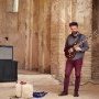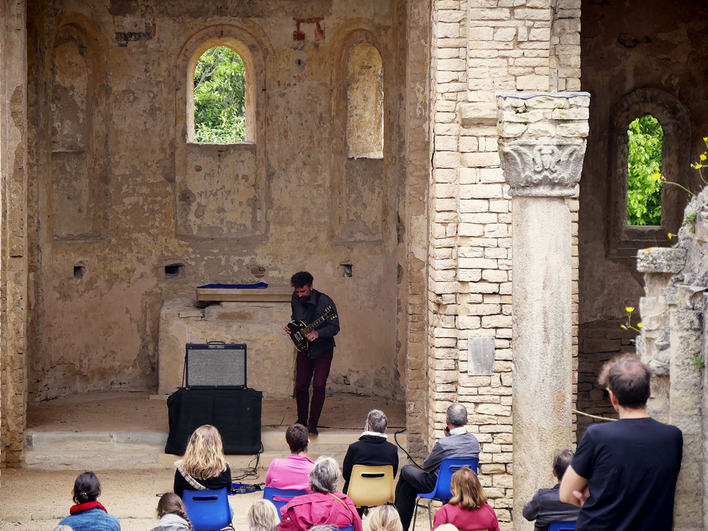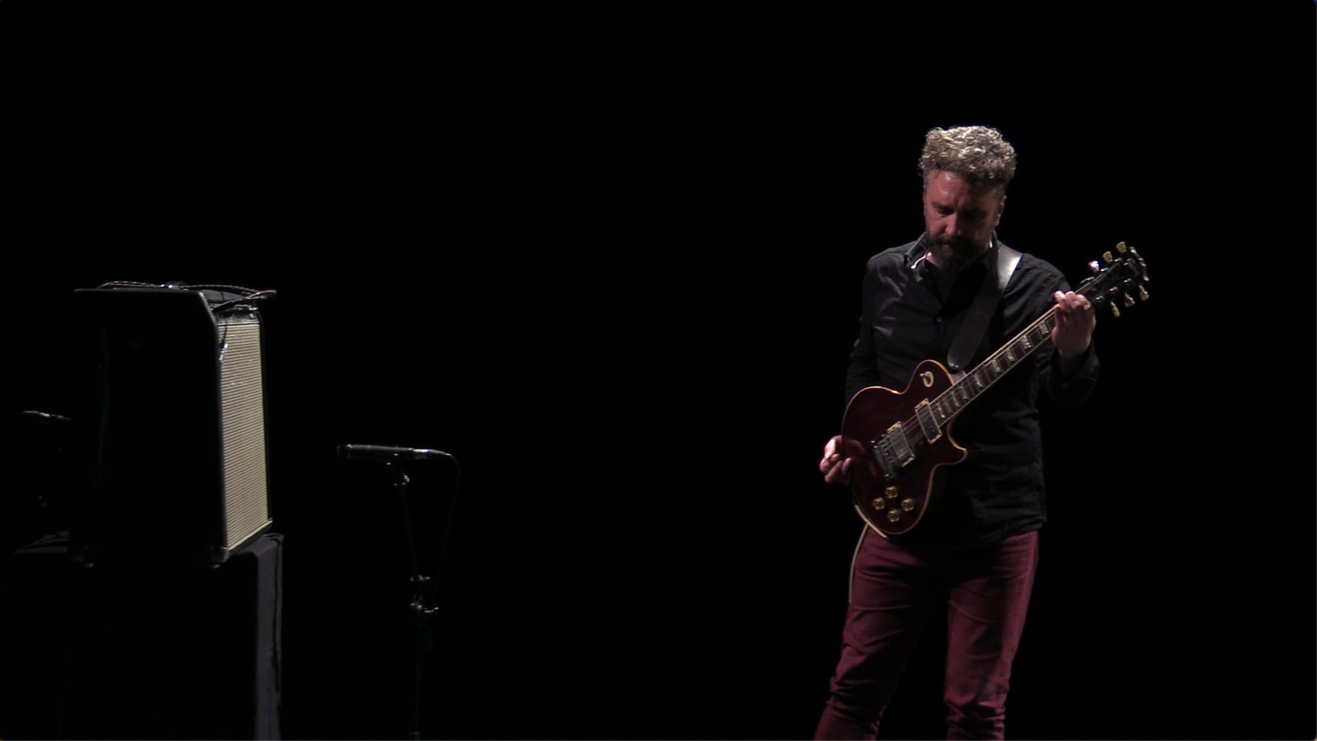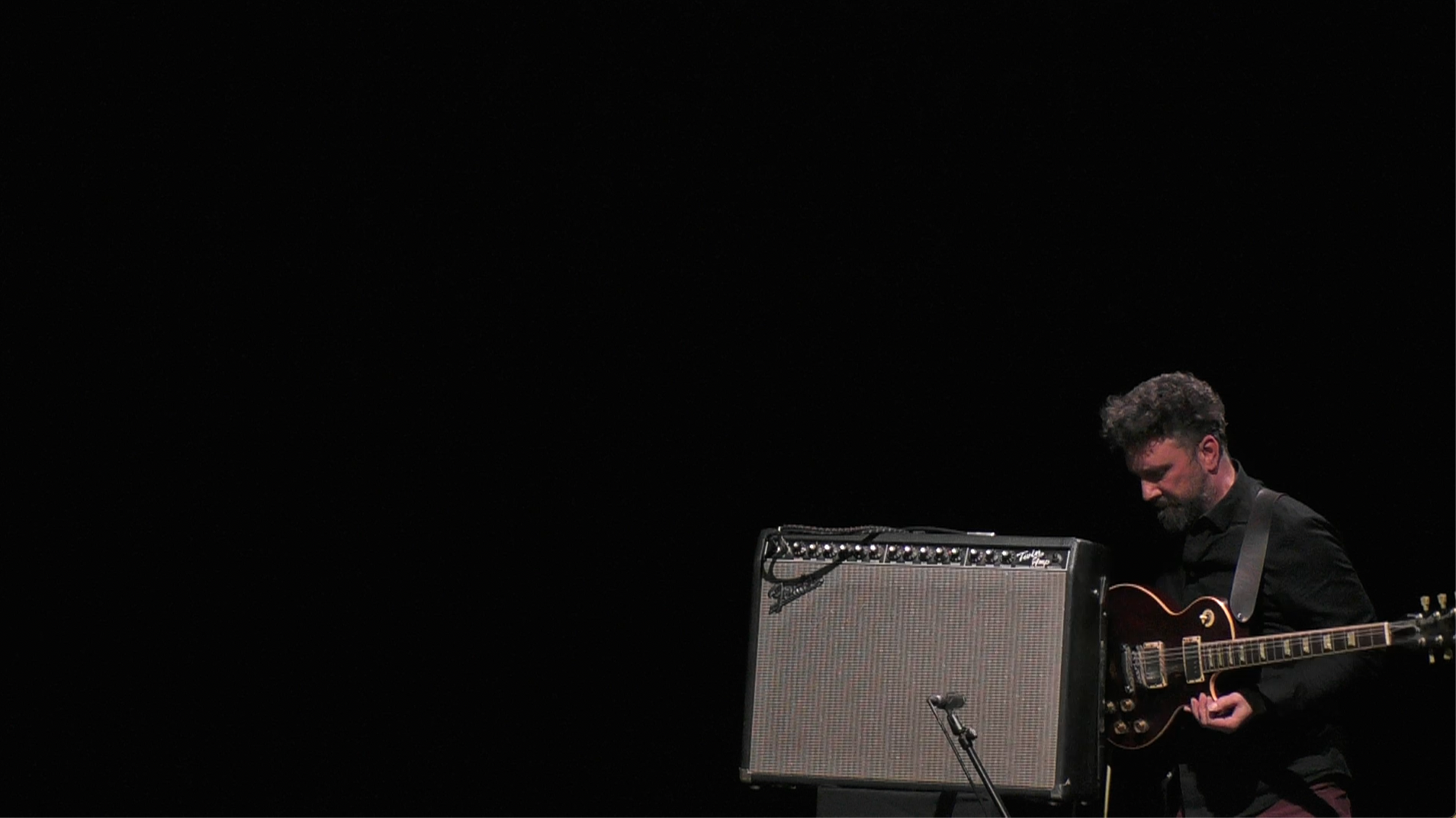 Larsen. Les sons sont lancés de l’amplificateur vers la guitare, sur laquelle ils rebondissent pour retourner à leur source. Les cordes de la guitare tissent une toile qui fait apparaître un horizon sonore dont les reliefs sont dessinés par les fluctuations de la matière électrique. Loin du contrôle ou de la maitrise, le musicien met ici en jeu un dispositif des plus simplistes qu’il pousse à l’extreme, déambulant autour de l’amplificateur, comme une danse qui déstabilise les ondes.